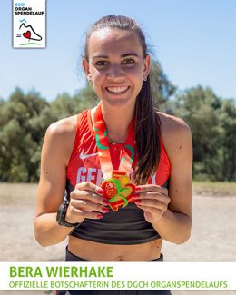 Als Baby im Alter von nur 9 Monaten wurde Bera Wierhake aufgrund einer Gallengangsatresie lebertransplantiert. Heute betreibt sie Leistungssport und hat bei den Weltmeisterschaften der Transplantierten 2023 in Australien den Weltrekord über 1500m im Mittelstreckenlauf gebrochen. Regelmäßig gewinnt sie Gold auf der Kurz- und Mittelstrecke bei Europa- und Weltmeisterschaften für Transplantierte.