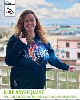 Elke unterstützt bereits seit 2021 als offizielle Botschafterin den Organspendelauf. Wir sagen herzlichen Dank!