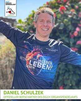 Daniel Schulzek ist unser Botschafter aus Düsseldorf. Als begeistertem Läufer liegt ihm das Thema Organspende sehr am Herzen. Daniel findet: Der DGCH Organspendelauf ist eine tolle Möglichkeit, auf dieses wichtige Thema aufmerksam zu machen.