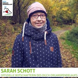Sarah verstarb im Oktober 2025. Als offizielle Botschafterin unterstützte sie seit 2021 mit großem Engagement den Organspendelauf. Wir sagen herzlichen Dank und wünschen ihrer Familie und ihren Freunden alles Gute!