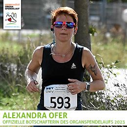 "Mein Name ist Alexandra Ofer. Ich bin zweifache Mutter und mittlerweile leidenschaftliche Läuferin. Meine jüngste Tochter hatte Ende 2018 nach langer schwerer Krankheit das große Glück, durch eine Nierentransplantation wieder einen Weg zurück in eine normale Kindheit zu finden. In dieser Zeit haben wir als Familie erlebt, wie wenig Wissen man zum Thema Organspende hat. Das war für mich Anlass, einen Beitrag leisten zu wollen. Organspende geht uns alle an, denn es kann jeden treffen!