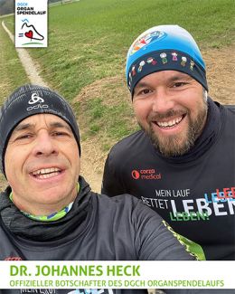 Seitdem er im Jahr 2009 live den Neumarkter Stadlauf erlebte, ist Dr. Heck leidenschaftlicher Läufer. Dass der DGCH Organspendelauf zusätzlich zum Präsenzlauf in München virtuell überall möglich ist, sieht Dr. Heck als Vorteil: Auf auf diese Weise kann man überall laufen und nebenbei noch etwas Gutes für andere Menschen tun.