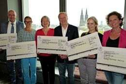 Erneut unterstützt wurden durch die Spenden des DGCH Organspendelaufs 2024 die Kinderhilfe Organtransplantation, der Verein Junge Helden e.V., sowie das Rehazentrum Ederhof der Rudolf Pichlmayr-Stiftung. Außerdem erhielten in diesem Jahr die Radtour Bayern "Pro Organspende" des Transdia Sport e.V. und das Bündnis Pro Transplant e.V. einen Teil der Spendengelder. Übergeben wurden die symbolischen Spendeschecks von Prof. Dr. Matthias Anthuber (4.v.l.o.), Chirurgischer Leiter des Transplantationszentrums am Universitätsklinikum Augsburg und Beauftragter von Seiten der DGCH für den Organspendelauf, sowie Prof. Dr. Udo Rolle, Präsident der der DGCH (2.v.l.o.).